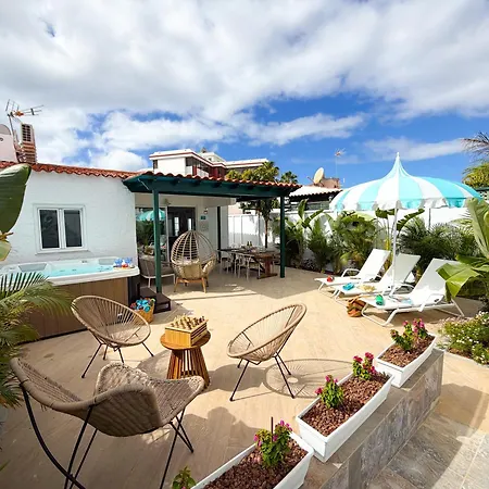 Die Villa Oasis Beach III The Paradise With Private Jacuzzi Playa del Inglés liegt circa 6 Gehminuten vom Pacha Club entfernt und bietet Gästen eine Terrasse. Die Villa in Playa del Inglés bietet seinen Gästen ein entspannendes Erlebnis mit einem Whirlpool.